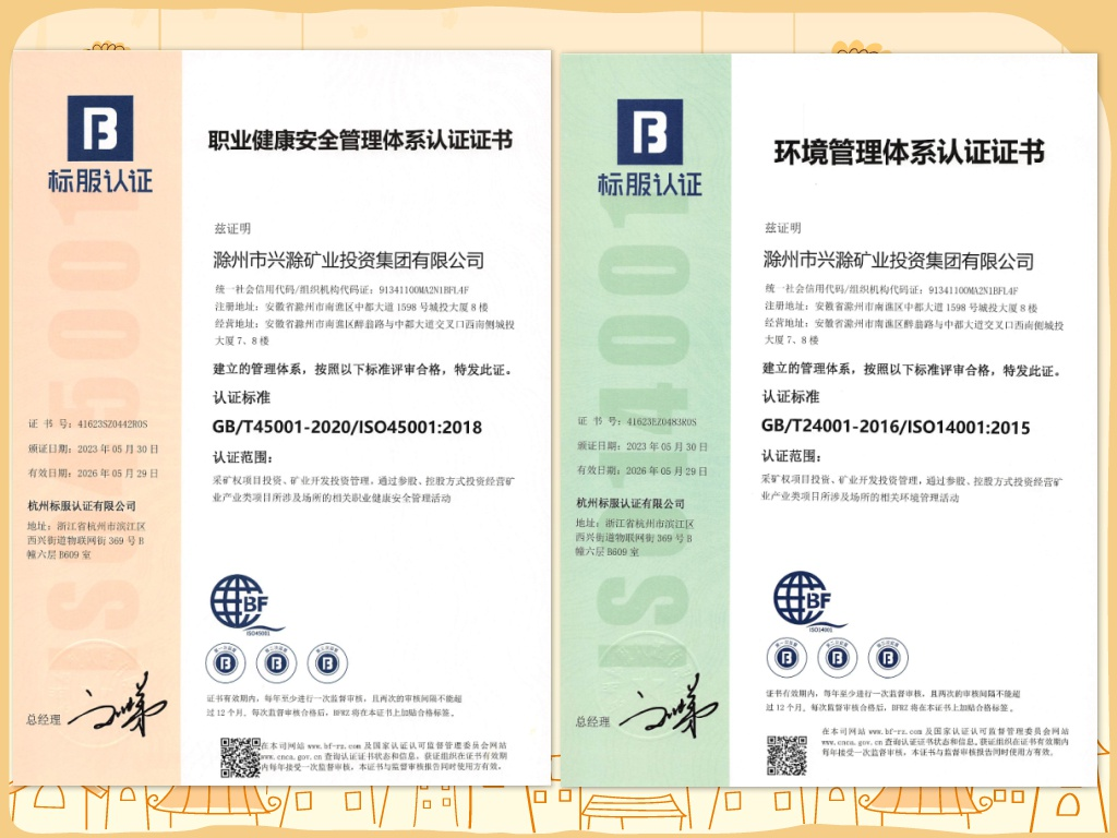 近日,市礦投集團順利通過了ISO14001環(huán)境管理體系和ISO45001職業(yè)健康安全管理體系認(rèn)證,并獲認(rèn)證證書,標(biāo)志著集團公司在安全及環(huán)保管理精細(xì)化、制度化、規(guī)范化方面邁上了新的臺階。
